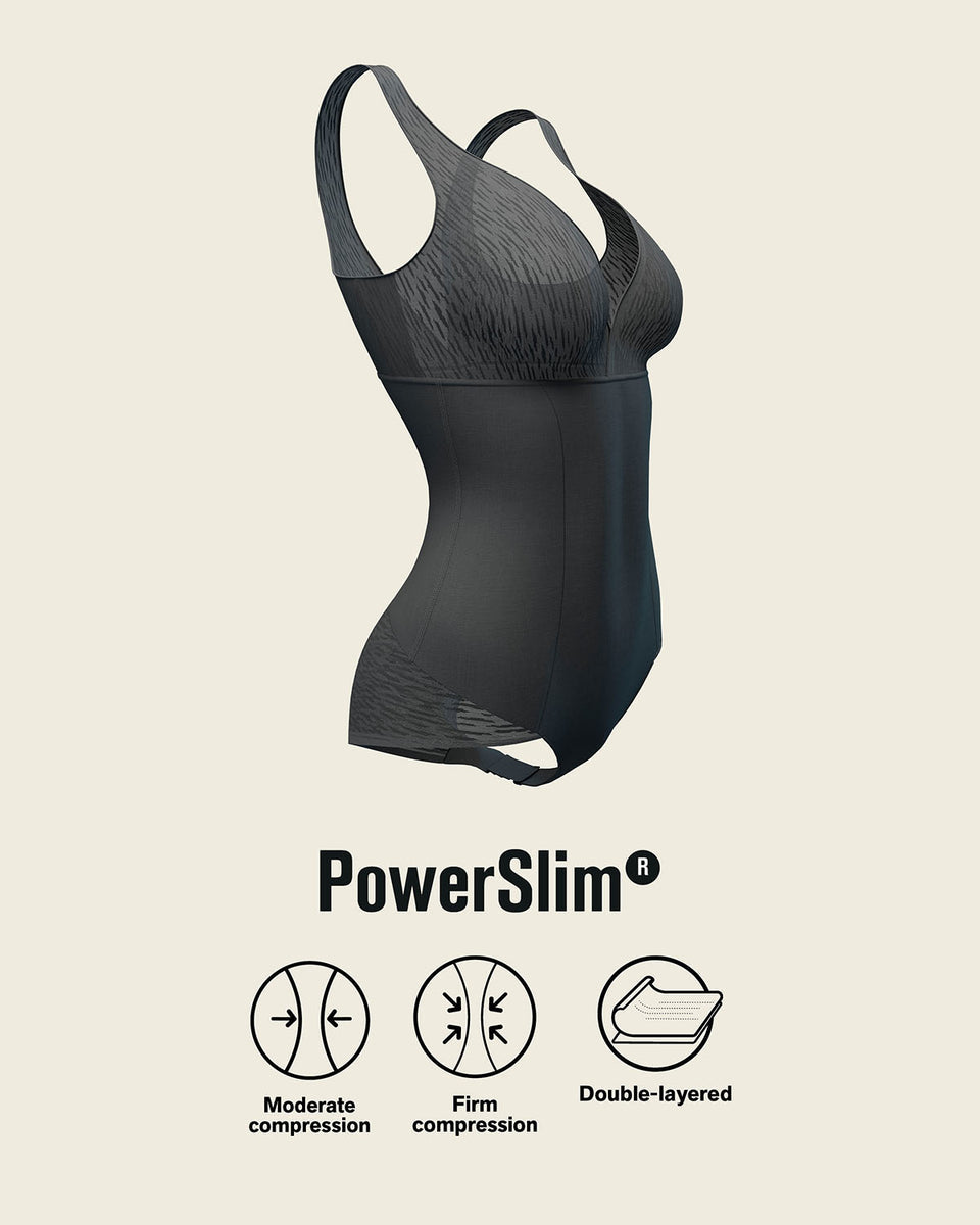 Double-layered sculpting power with an inner layer of PowerSlim® for firm compression.