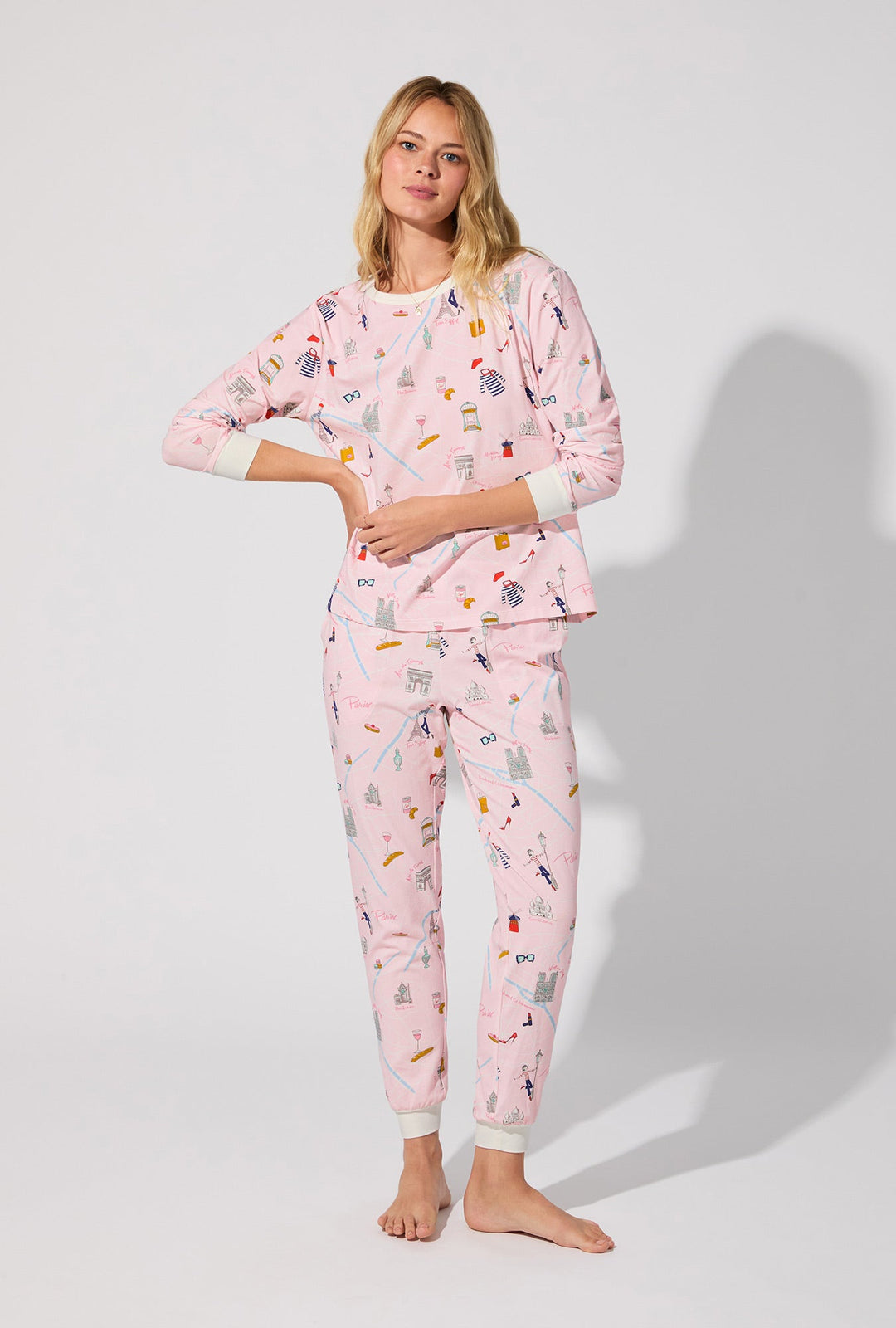 48 Hrs In Paris Long Sleeve Pullover Crew and Jogger Stretch Jersey PJ Set