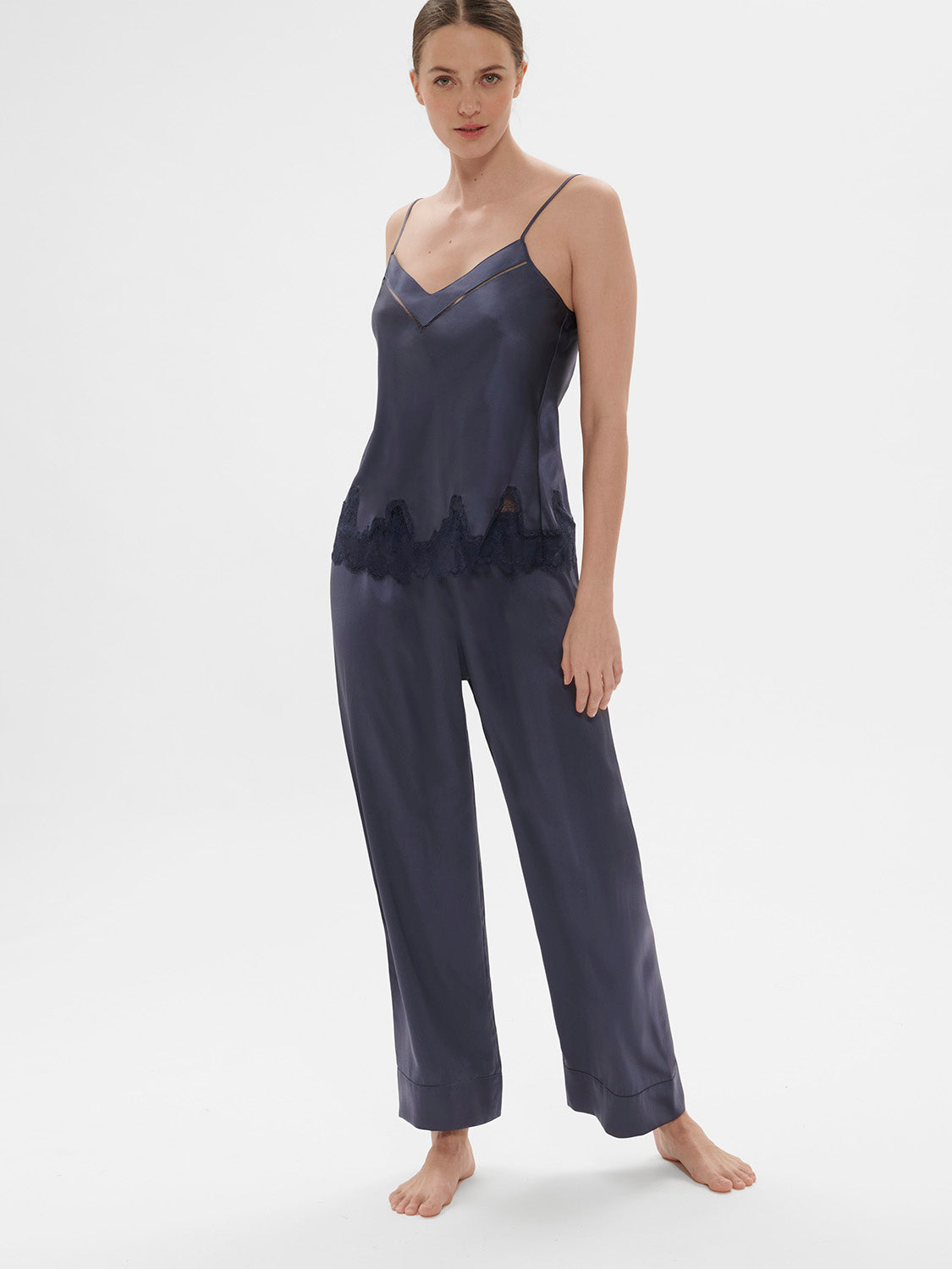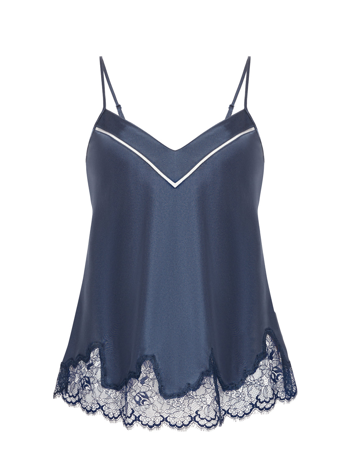 Lightweight silk enhanced with refined lace for an elegant silhouette.Silk and lace top.• Tulle detail at the neckline.• Thin adjustable straps.